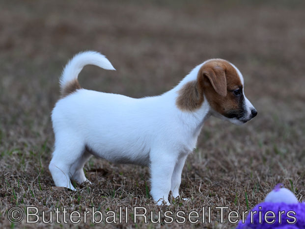Meet Boone, a truly handsome AKC Russell Terrier male with a bright, confident presence and an irresistibly sweet expression. This lovely boy carries a classic tan-and-white coat with beautiful markings and a sturdy, well-balanced build. Boone’s personality shines through in every photo—curious, friendly, and always ready for adventure. He moves with confidence and shows all the makings of a wonderful companion, whether exploring the outdoors or cuddling up after playtime. Boone is a wonderful representation of the Butterball Russell Terrier look and temperament—smart, loving, and absolutely adorable.